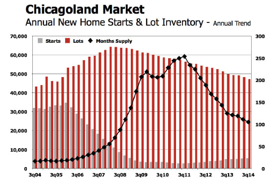 Since 2013, builders in the Chicago have continued to re-enter the market. Most will continue to set sites on smaller projects, including single family homes and smaller condo buildings with less than 20 units. We are still yet to see ground breaking on many large (+200 unit) for sale residences. Construction spending as a whole has increased nearly 3X over the last year, growing from $356M to $993M in 2014. The bigger issue that developers are now facing is finding good, affordable land to build on.