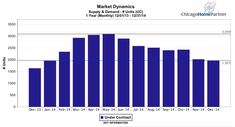 The late start to the Spring market did not extend through the summer, as some has thought and hoped. This resulted in a very short 2014 Spring market. Much like the seasonality of a traditional market, the North Side market died down with the entrance of Summer. Under contract properties fell nearly 20% between June and July of 2014 and continued to dwindle through the rest of the year.
