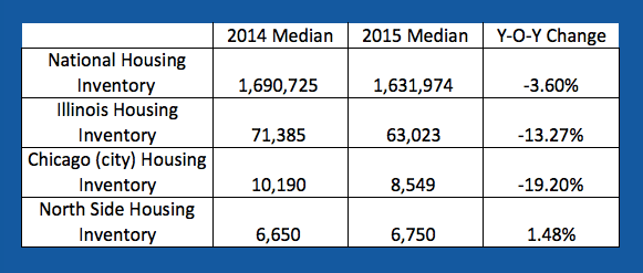 Below you’ll see our 2014 market predictions specific to the North Side region of the city as well as 2015 year-end numbers. As you can see, we were pretty spot on with our insight, the only stat not adhering to our prediction was the inventory levels. Where available homes were much improved over prior years, month’s supply of inventory still remains historically low for the Chicago North Side market.
