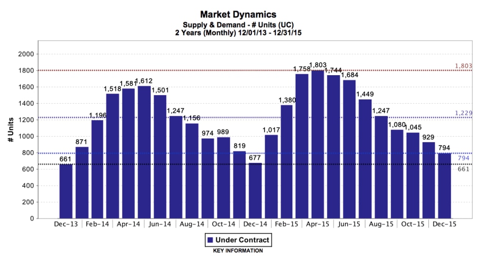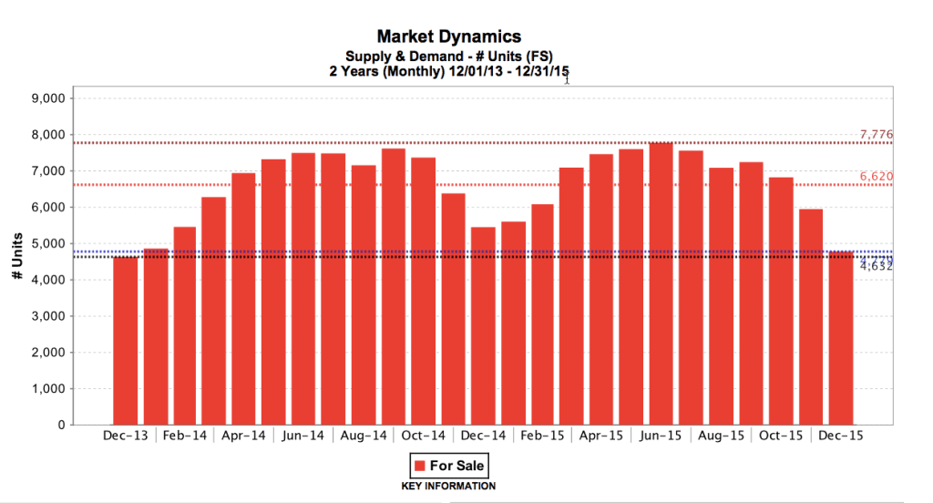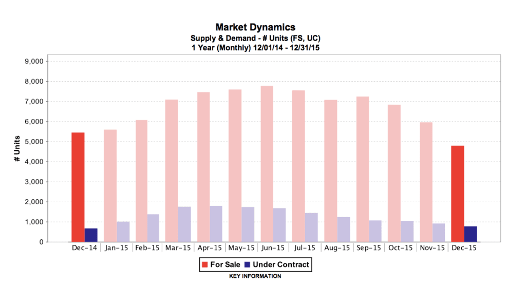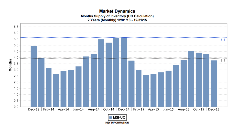 After last year's extremely limited inventory, we expected to see an increase of “for sale” properties hit the market as sellers experienced steady price appreciation. Where we saw this influx for the first part of the year, we also saw a corresponding increase in contracts, (up 11% over 2014) that lasted all of 2015.This resulted in months supply of inventory, (MSI), to remain low and never reach the healthy levels we predicted.