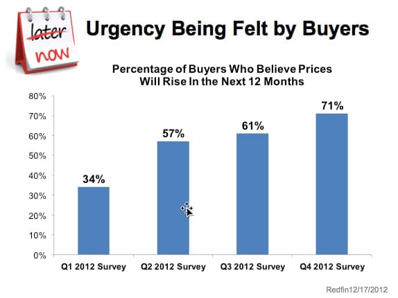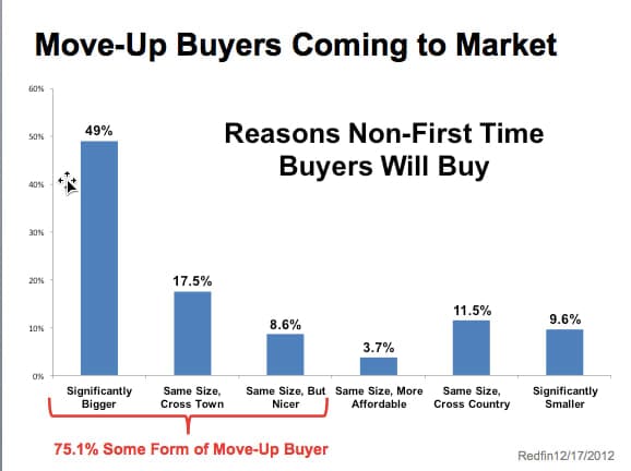 Many move-up homebuyers are confident that prices have bottomed out 2012 Buyer Urgency Redfin Study's shrinking inventory has caused an uptick in demand for their local area. They’ve been waiting five years or longer to act, life events have taken place and now they’re ready to move into the next phase of their lives even if they are bringing money to the closing table.
