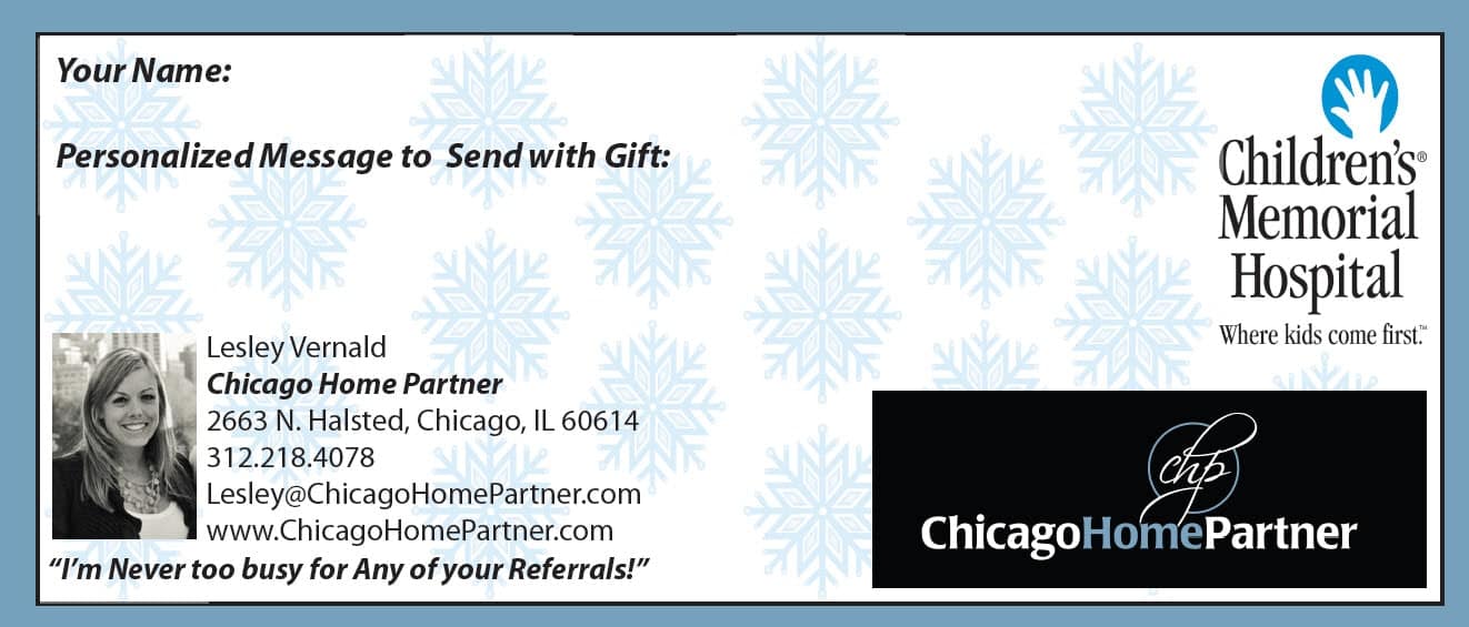 That’s why I am continuing the tradition and hoping that you will help support the Chicago Home Partner’s 7th Annual Children’s Memorial Hospital Toy Drive. We understand that things might be a little tighter than years before, but we can honestly say that giving is a feeling rewarded tenfold.